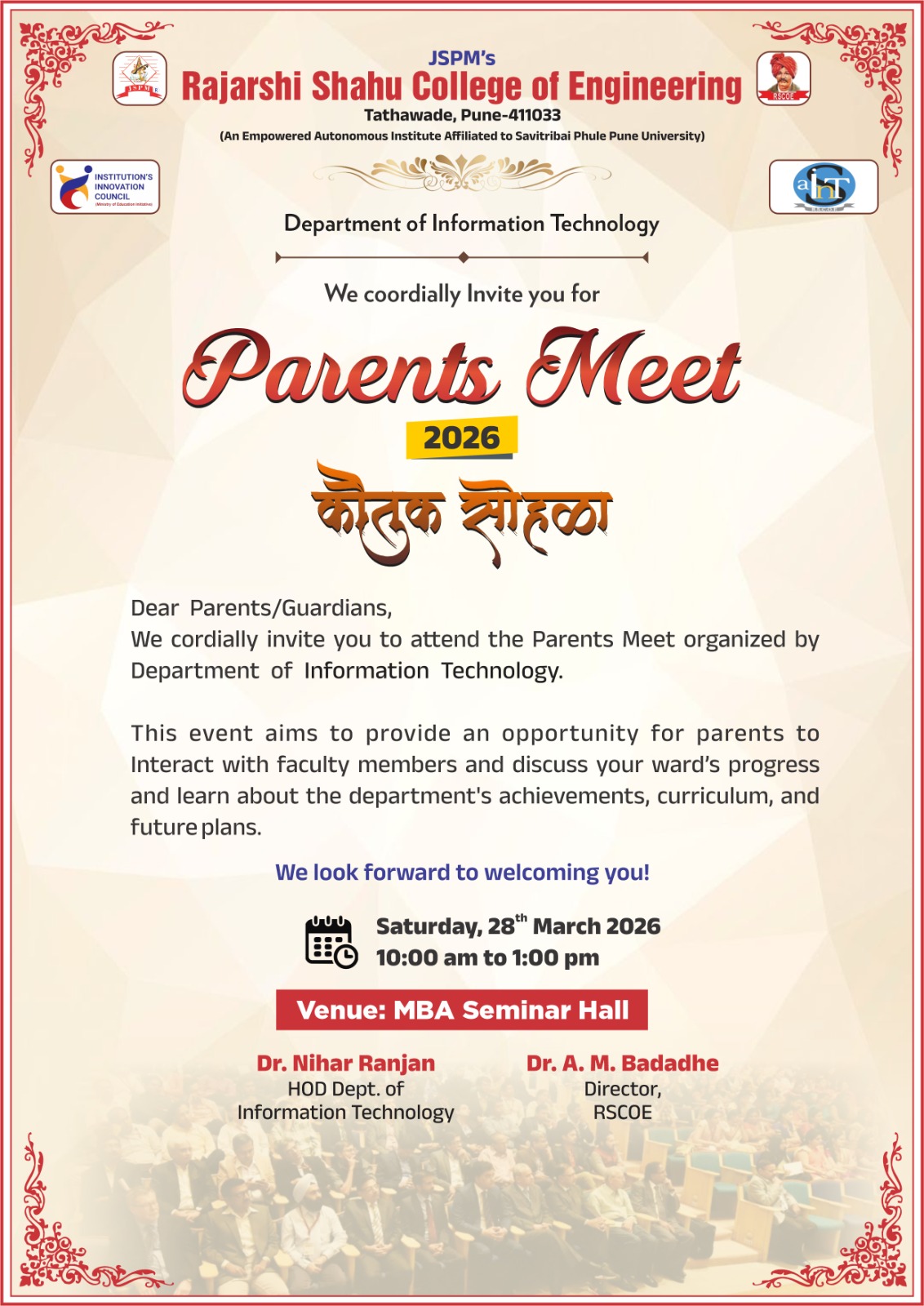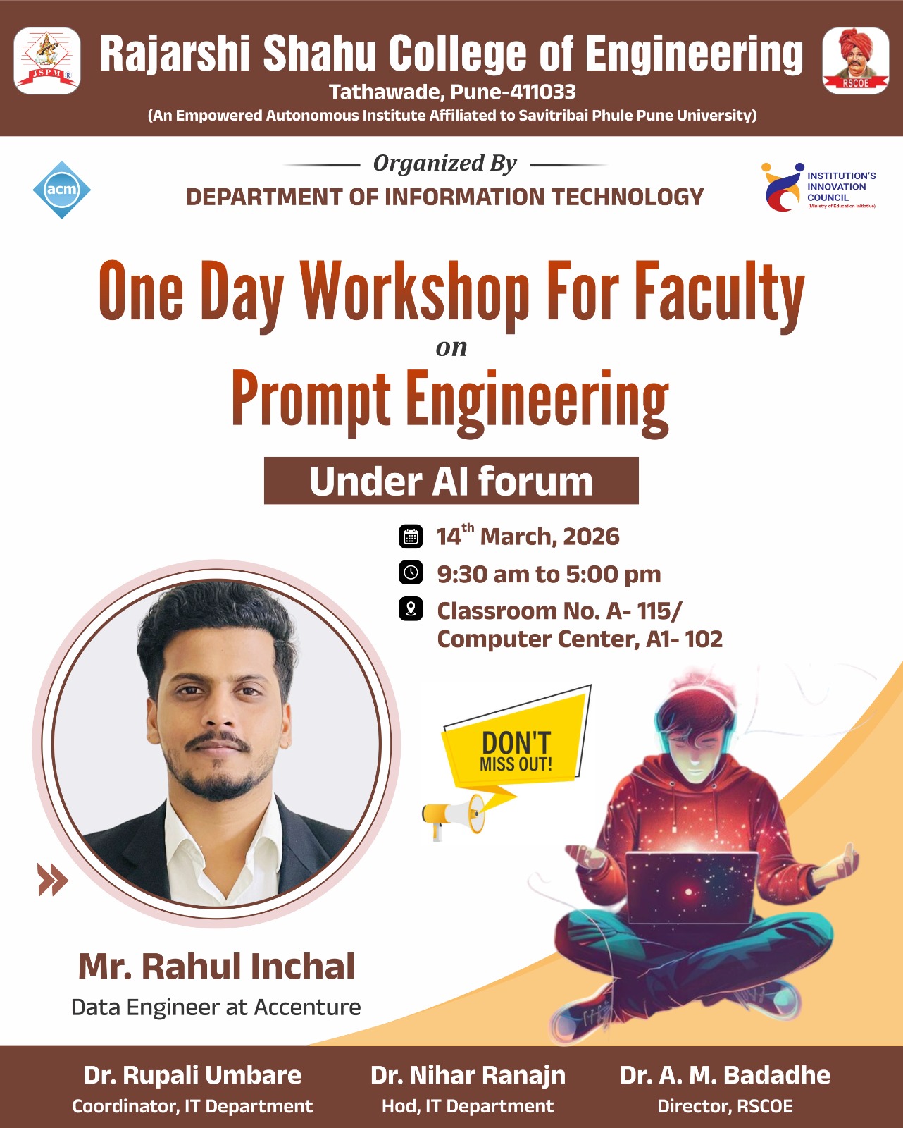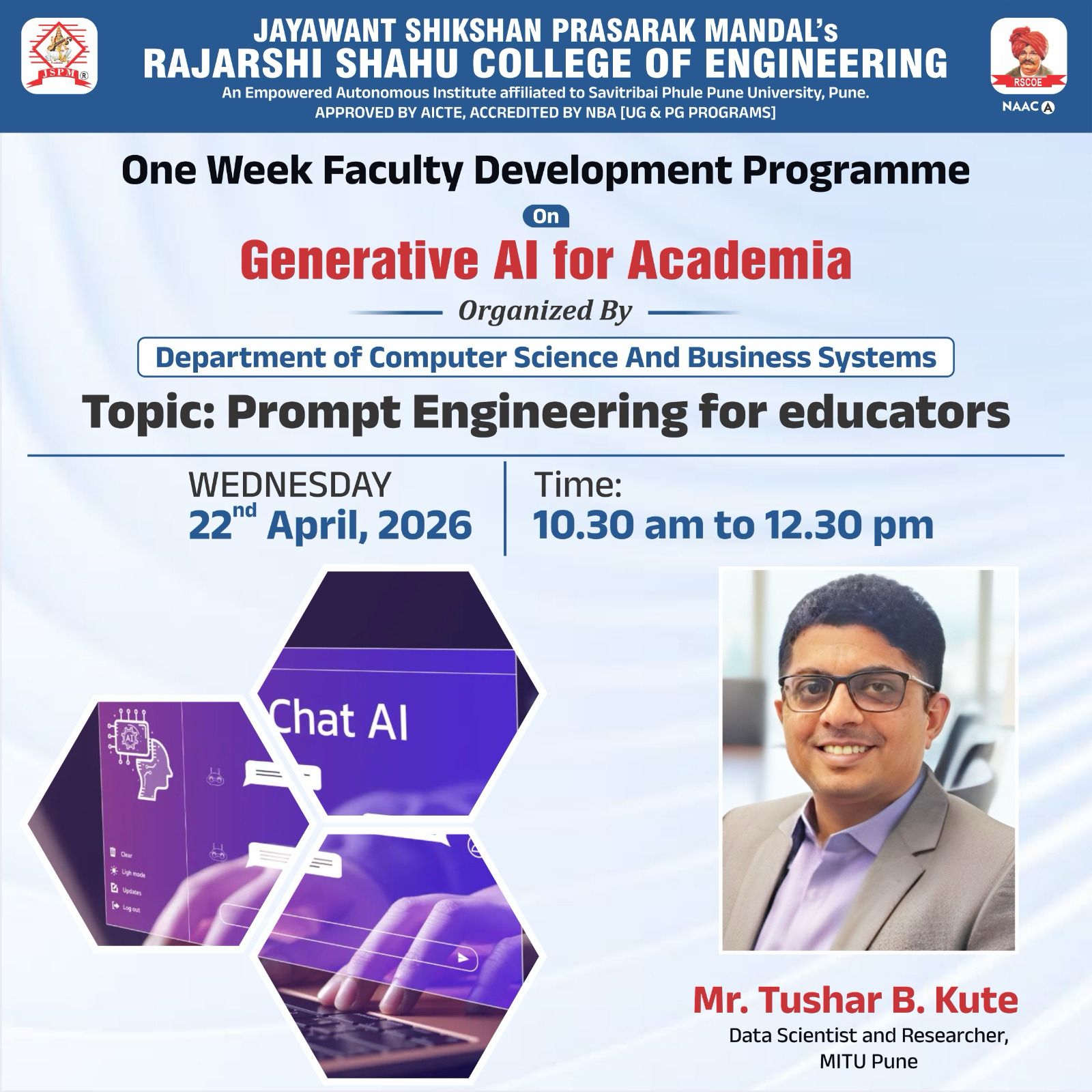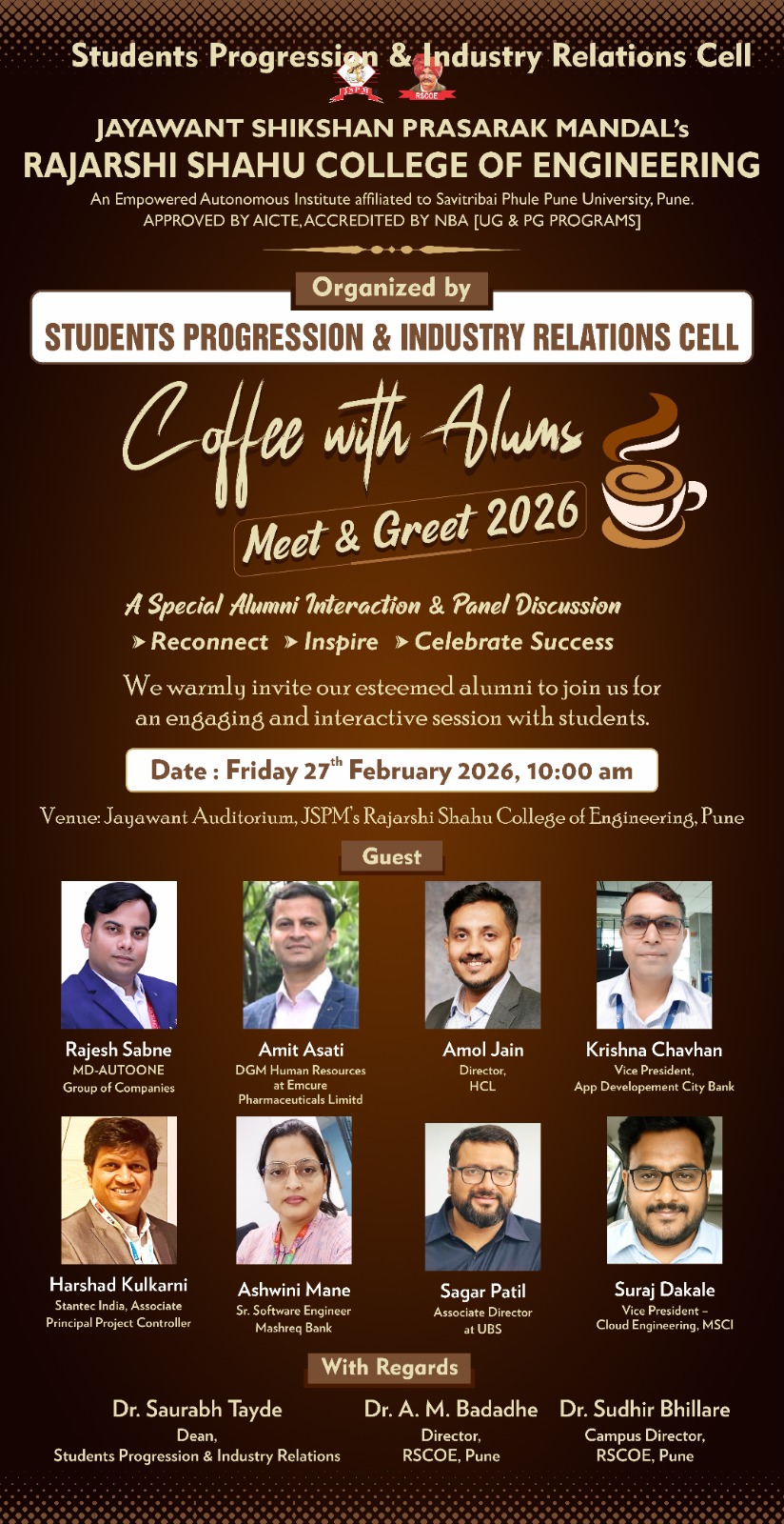 Rajarshi Shahu College of Engineering is one among the hallmark institutes of pune, established in 2001 with the aim of providing quality technical education and excellence in the ever expanding horizon of technical revolution of 21st century. The institute is becoming an icon in the field of engineering education in the state of Maharashtra. It is nurtured and managed by Jayawant Shikshan Prasarak Manadal Trust. The Institute is approved by the All India Council for Technical Education (AICTE), New Delhi and Govt. of Maharashtra affiliated to Savitribai Phule Pune University.