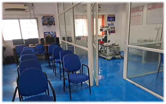 The Robotics Laboratory, established in collaboration with Tata Automation Ltd., Pune, is dedicated to the study and application of robotics. In addition to an industrial robot, the lab is equipped with advanced software tools such as RoboDK and Roboanalyzer, enabling students to design, simulate, and develop a wide range of robotic applications. This setup provides a comprehensive learning environment for hands-on experience with robotic systems and their integration into real-world industrial processes.