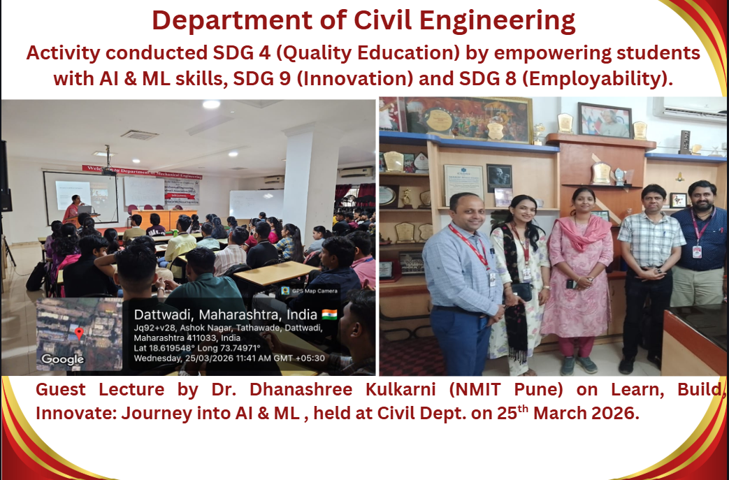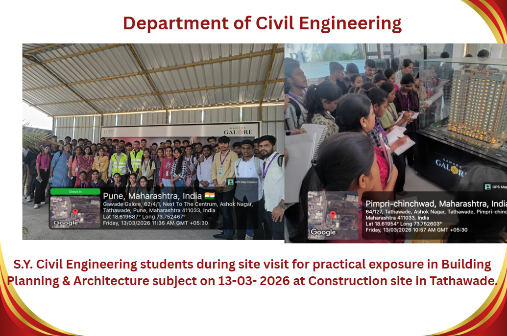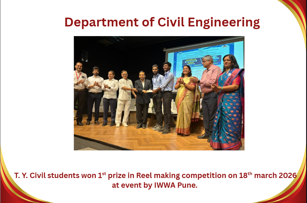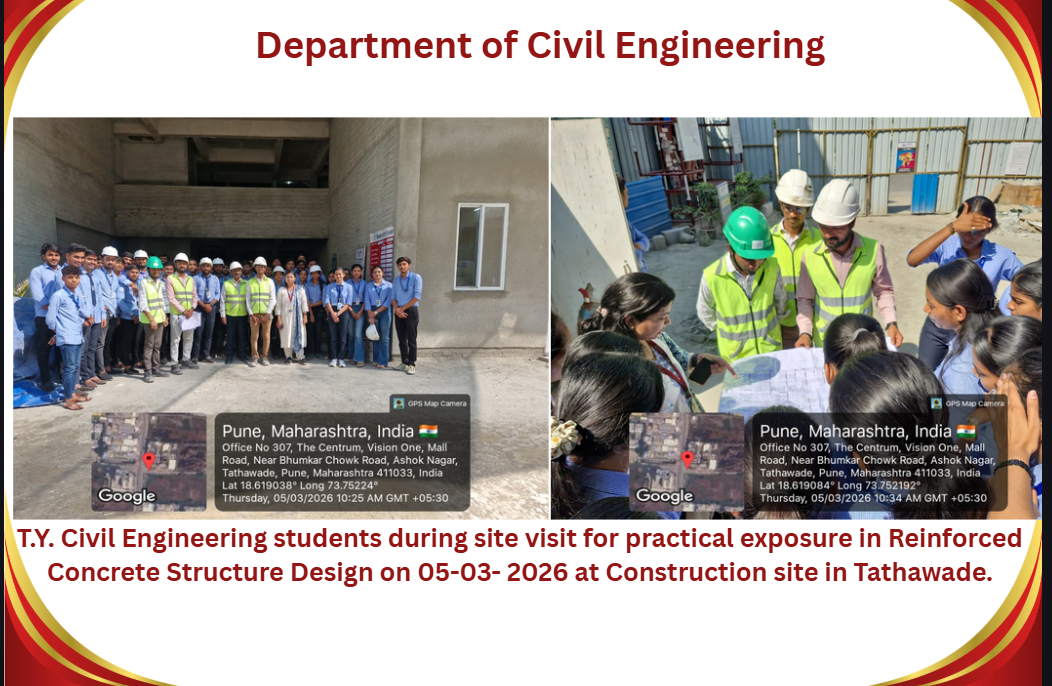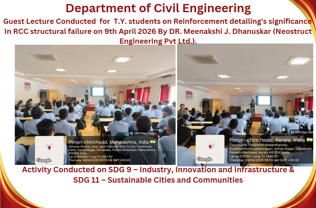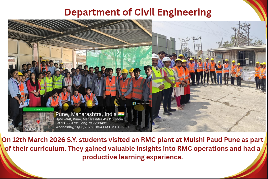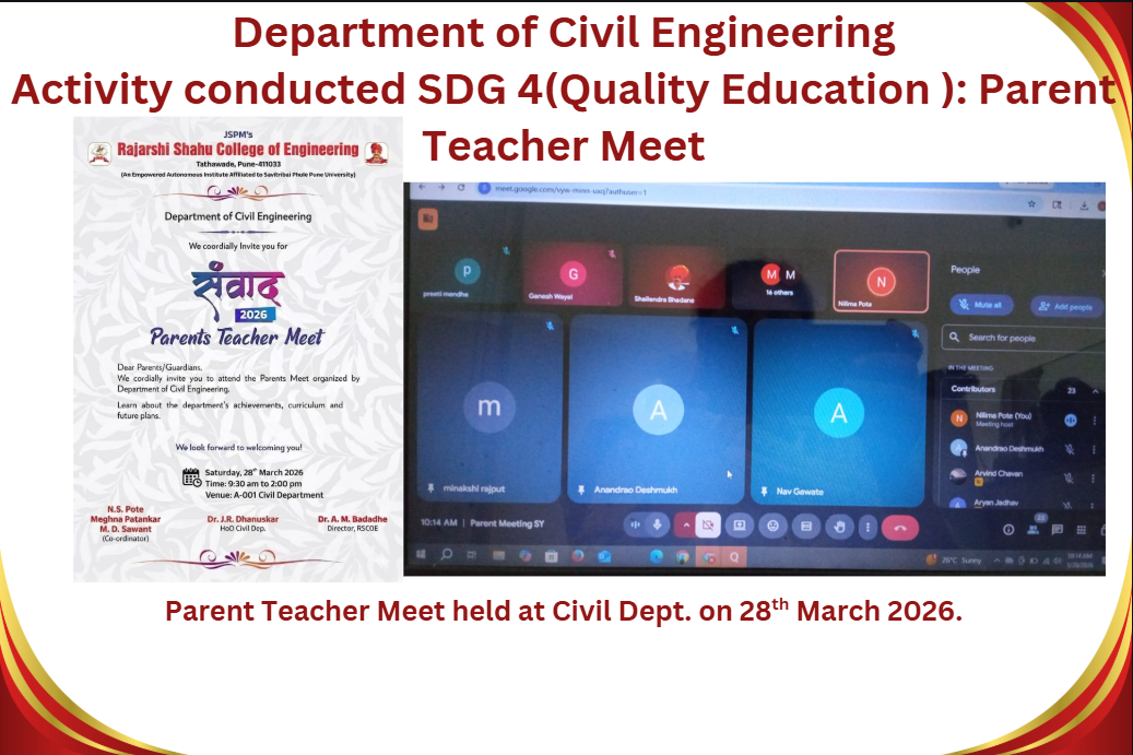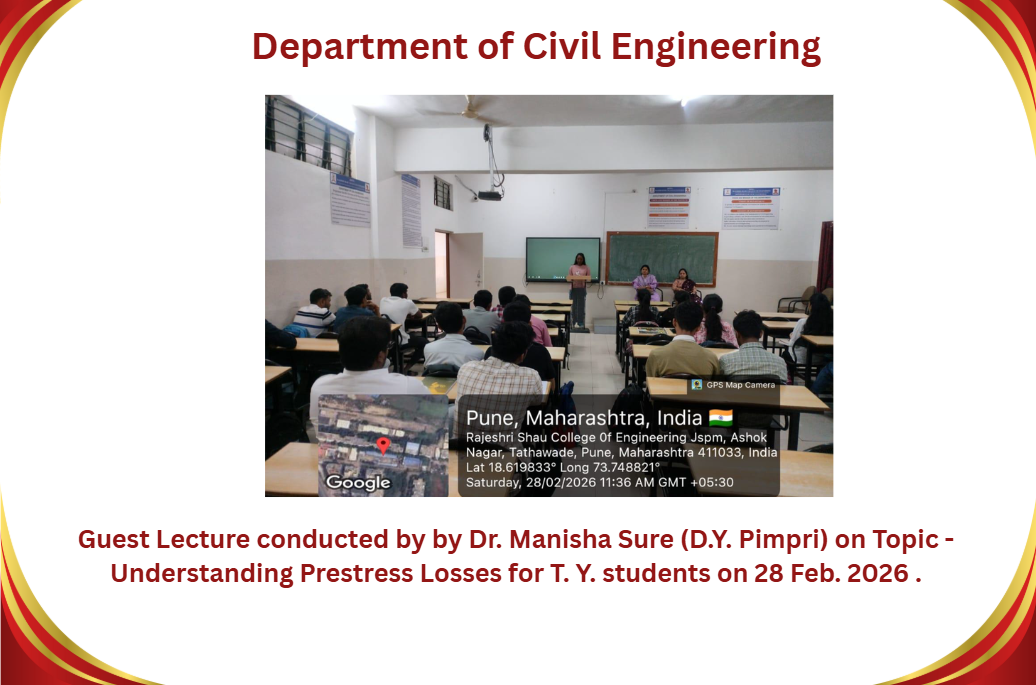 M.Tech Coordinator, Department of Civil Engineering RSCOE organized Induction Programe for F.Y.M.Tech students. Dr. Sushma Kulkarni, the Vice Chancellor of NICMAR University, Pune graced the event as Chief Guest.