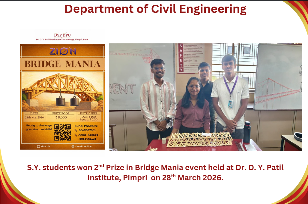 Civil Engineering Student Assosiation (CESA) We invited Tambe Sir (City Enginner PCMC) as a chief guest of the event. We started the event by doing the Saraswati Vandana. Then inaugurated the post to students by chief guest. Then chief guest motivated and guided students with their valuable words.After that event was concluded by vote of thanks.