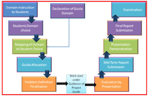 - Project work is carried out by a group of three-four students under the guidance of a faculty member. Figure shows the process of project identification, allocation, and evaluation.