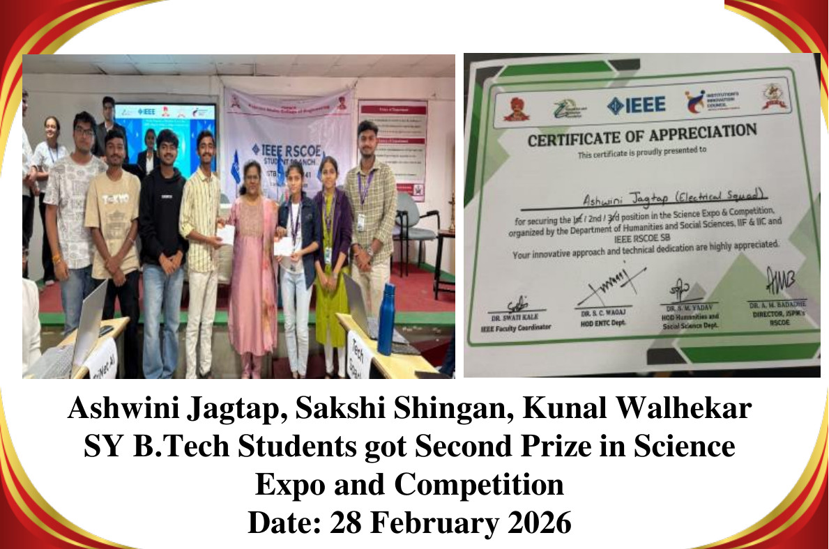 | 4 | Sakshi Chopde | TE | First Prize in Paper Presentation competition at G H Raisoni College of Engineering, Pune |
