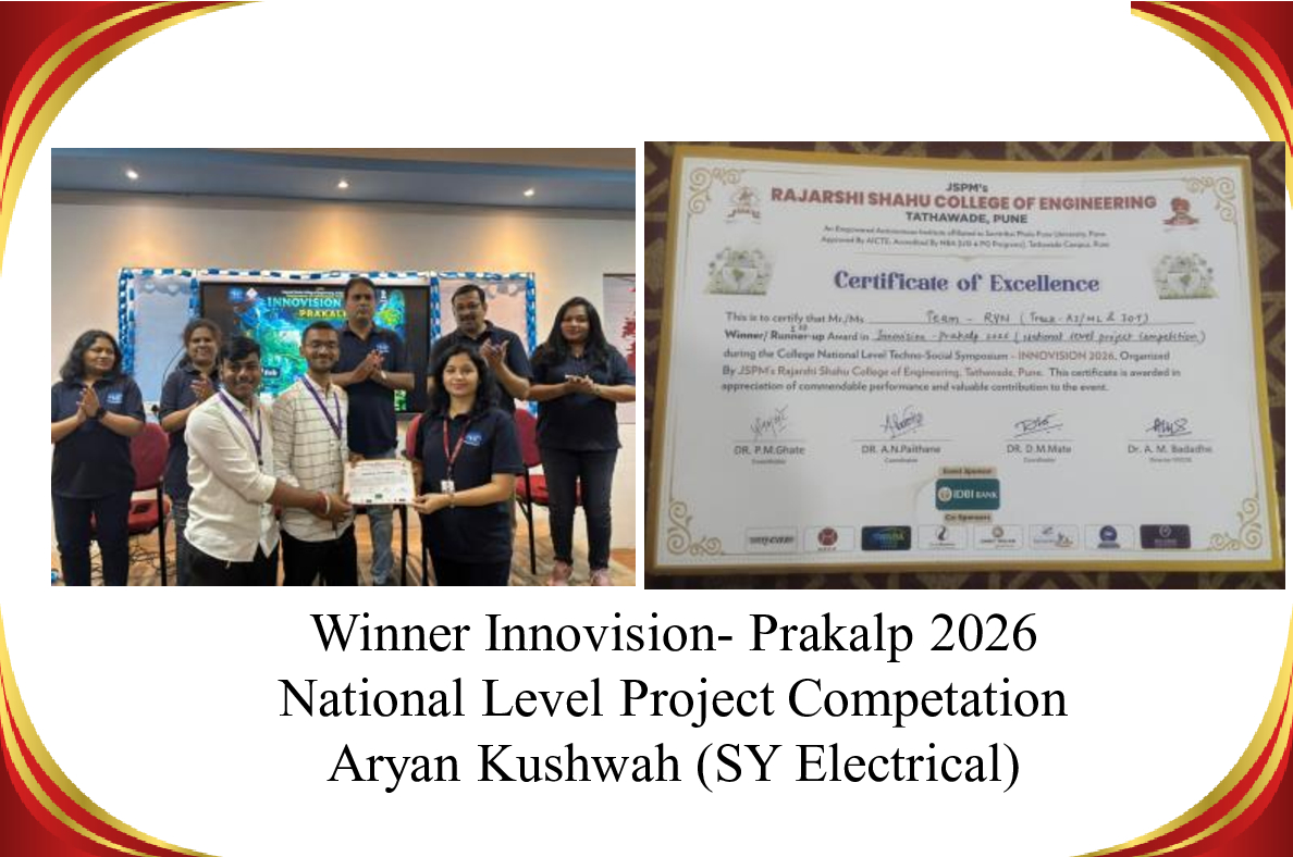 | 5 | Prasad Bankar | SE | 3rd rank in Ideation by SPPU |