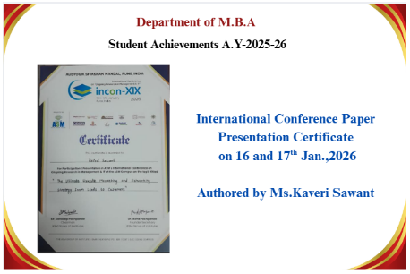 | 5 | 2017-18 | MBA II | Ms.Vaishnavi Lalgunkar | Book Review Competition |