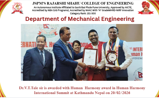 Dr. V. T. Tale of Mechanical Engineering Department got International Excellence Award for Best Education Service Provider of Year 2023