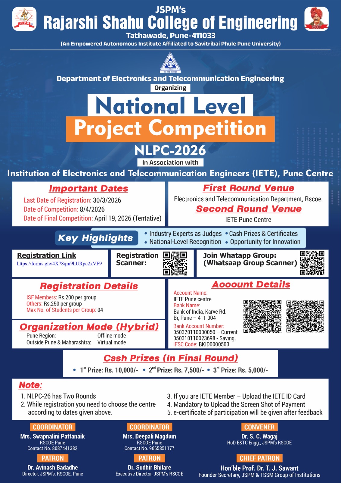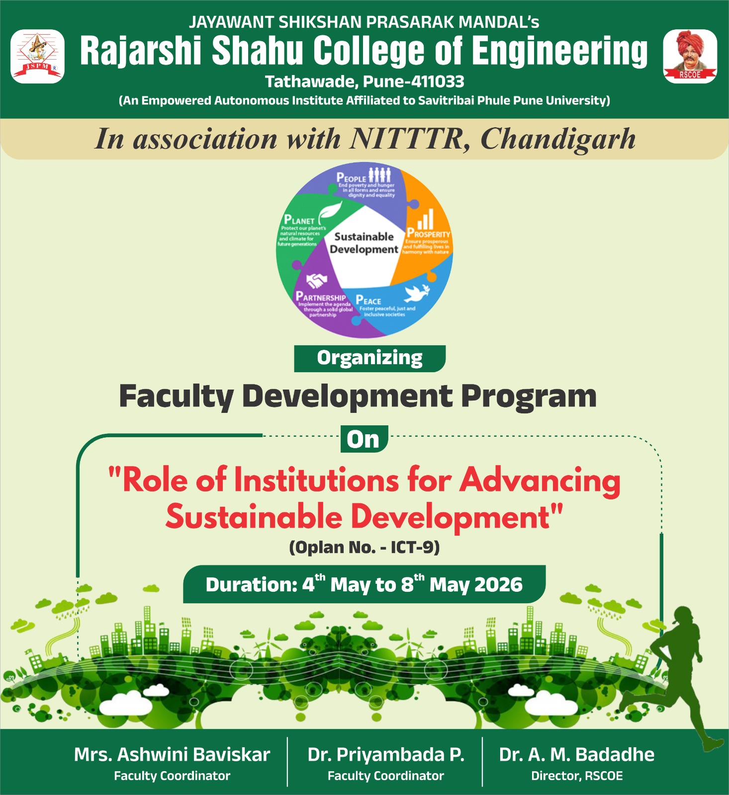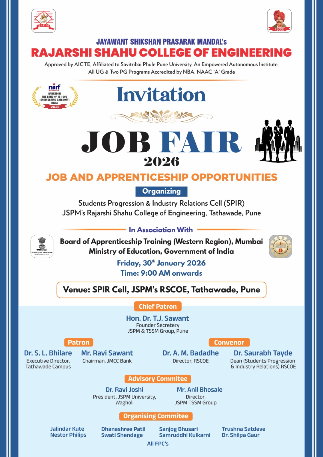 Rajarshi Shahu College of Engineering is one among the hallmark institutes of pune, established in 2001 with the aim of providing quality technical education and excellence in the ever expanding horizon of technical revolution of 21st century. The institute is becoming an icon in the field of engineering education in the state of Maharashtra. It is nurtured and managed by Jayawant Shikshan Prasarak Manadal Trust. The Institute is approved by the All India Council for Technical Education (AICTE), New Delhi and Govt. of Maharashtra affiliated to Savitribai Phule Pune University.