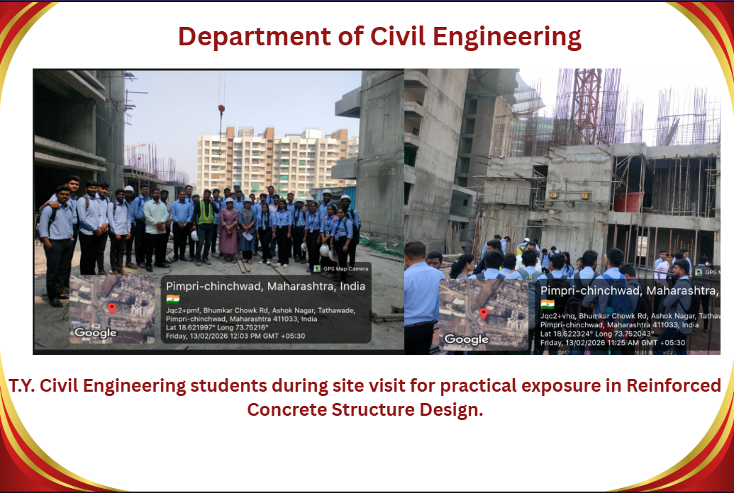 Civil Engineering Student Assosiation (CESA) We invited Tambe Sir (City Enginner PCMC) as a chief guest of the event. We started the event by doing the Saraswati Vandana. Then inaugurated the post to students by chief guest. Then chief guest motivated and guided students with their valuable words.After that event was concluded by vote of thanks.