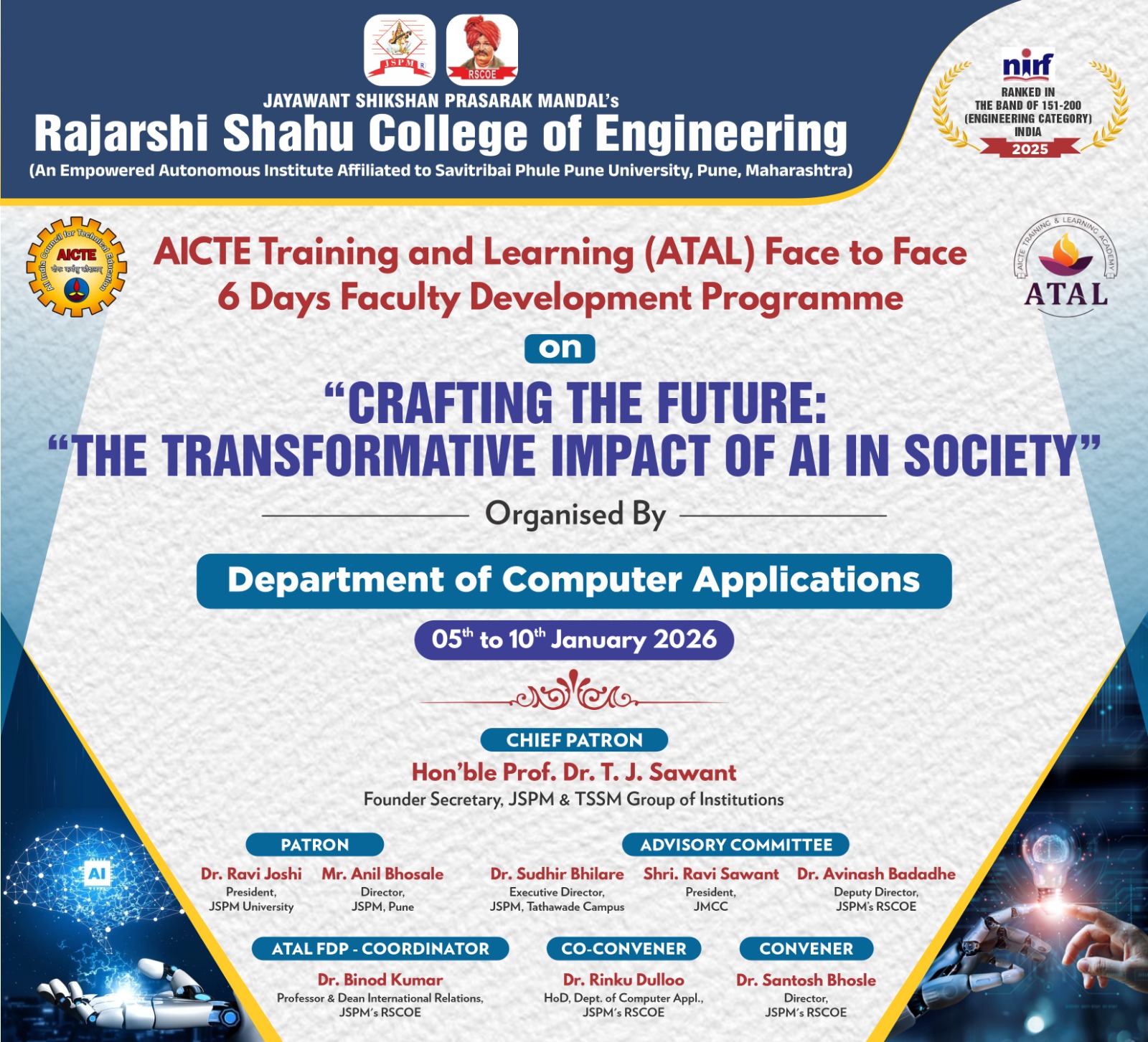 Rajarshi Shahu College of Engineering is one among the hallmark institutes of pune, established in 2001 with the aim of providing quality technical education and excellence in the ever expanding horizon of technical revolution of 21st century. The institute is becoming an icon in the field of engineering education in the state of Maharashtra. It is nurtured and managed by Jayawant Shikshan Prasarak Manadal Trust. The Institute is approved by the All India Council for Technical Education (AICTE), New Delhi and Govt. of Maharashtra affiliated to Savitribai Phule Pune University.