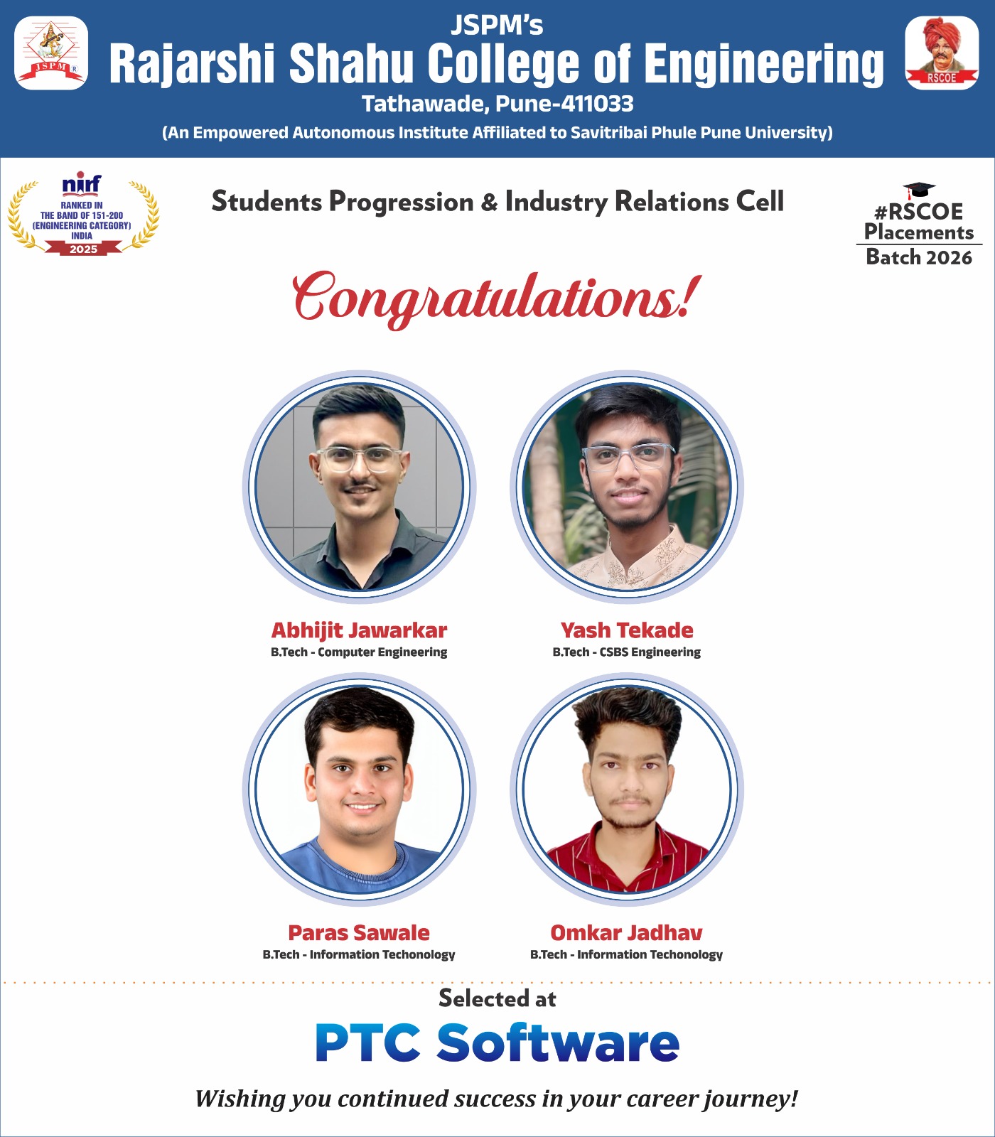 Automation & Robotics Computer Engineering Civil Engineering Computer Science & Business Systems Electronics & Telecommunication Engineering Electrical Engineering Engineering Science and Humanities Information Technology Mechanical Engineering MBA MCA & BCA RSCOE(Polytechnic)
