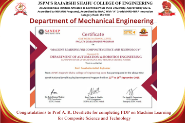 Prof. A.V. Dube and Prof. S.M.Kale, Mechanical engineering Department have successfully completed the intensive 6-days Bootcamp on Innovation, Design and Entrepreneurship organized by the Ministry of Education, Innovation Cell Government of India, and the AICTE in association with Wadhwani foundation. The bootcamp took place at the prestigious Indian Institute of Science Education and Research (IISER) Bhopal.