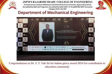 Dr. V. T. Tale of Mechanical Engineering Department got International Excellence Award for Best Education Service Provider of Year 2023