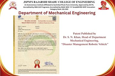 Dr. P. D. Patil and Dr. V. T. Tale of Mechanical Engineering Department filed patent for ‘Measurement of deflection using open source electronics platform’.